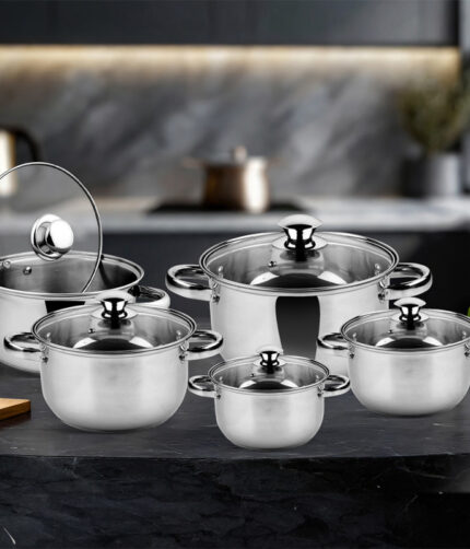 Set 10 Oale Inox G14 cu Capace din Oțel Inoxidabil, 16–24 cm, Design Lucios